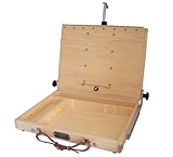 This larger version of their popular Medium French Resistance Pochade. This version features the same slim styling and versatile design of its smaller sister French Resistance Pochade. "2 in 1 design" allows you to paint any size panel or canvas from 4 by 6-inch to 20-inch by 24-inch and carry it home safely secured to the box. It can be used with a sturdy standard camera tripod or on a tabletop. Complete with leather handle, clips for an optional shoulder strap, storage compartments, telescoping mast and a universal tripod mount built into the bottom. Many painters use the inside front tray as a palette. Other palette options include: The 9 by 12 Guerrilla Backpacker Covered Palette, the 9 by 12 Guerrilla Backpacker Watercolor Palette and the Large French Resistance Palette Kit - a removable handheld wooden palette that comes complete with hardware to make it fit easily inside of the lid of your new Large French Resistance Pochade.